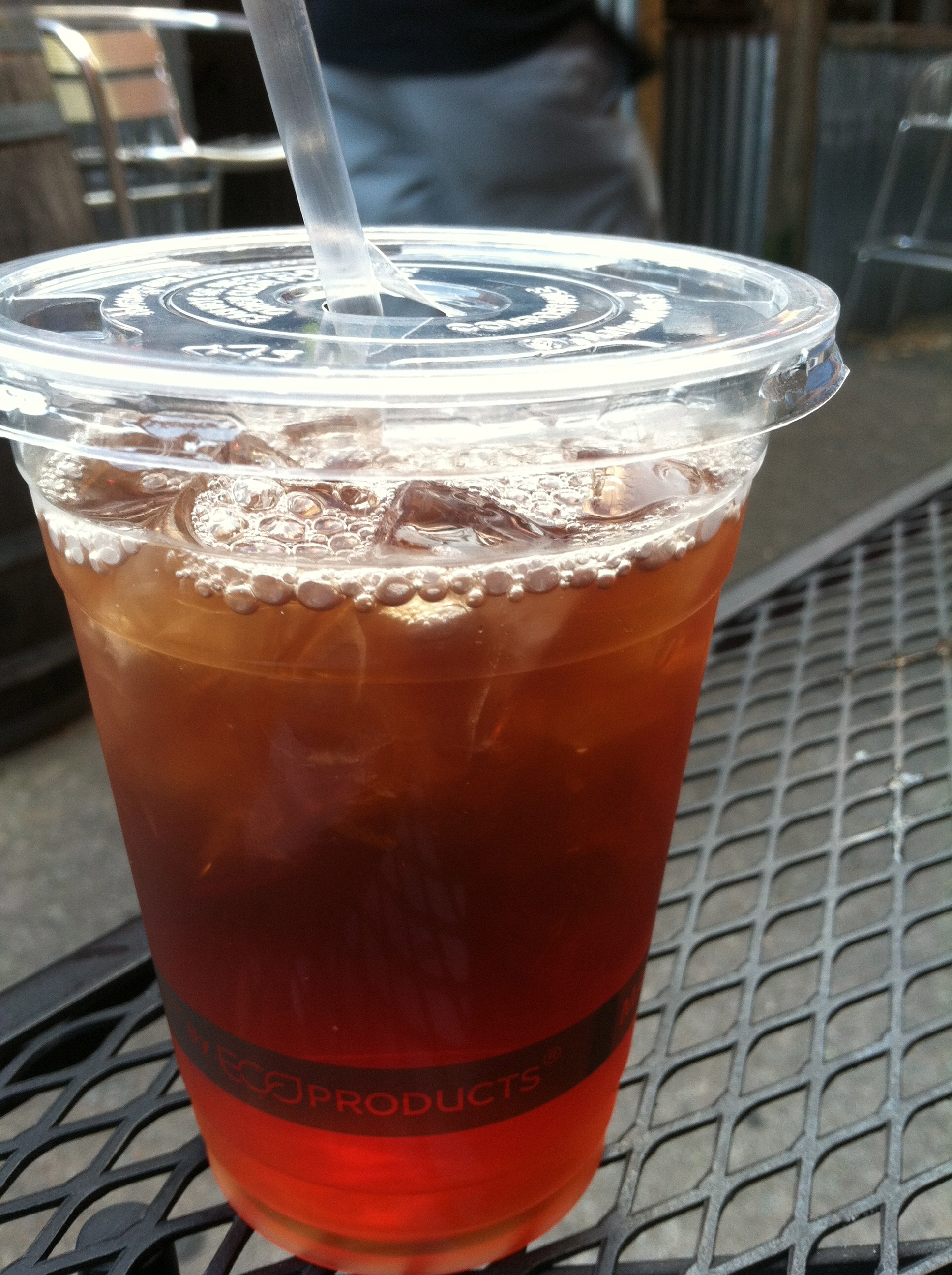 You really can’t go wrong at 6th & Vine. Exemplary small plates, tempting sandwiches and wraps, dinner entrees (steak, chops, seafood, ribs, pasta) and even a popular brunch (which we’ve yet to try) with specials and benedicts..mmm. They even have a late night menu. They also make great strides to be as Eco-friendly as possible. See my to-go cup made of corn that can be composted?