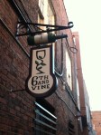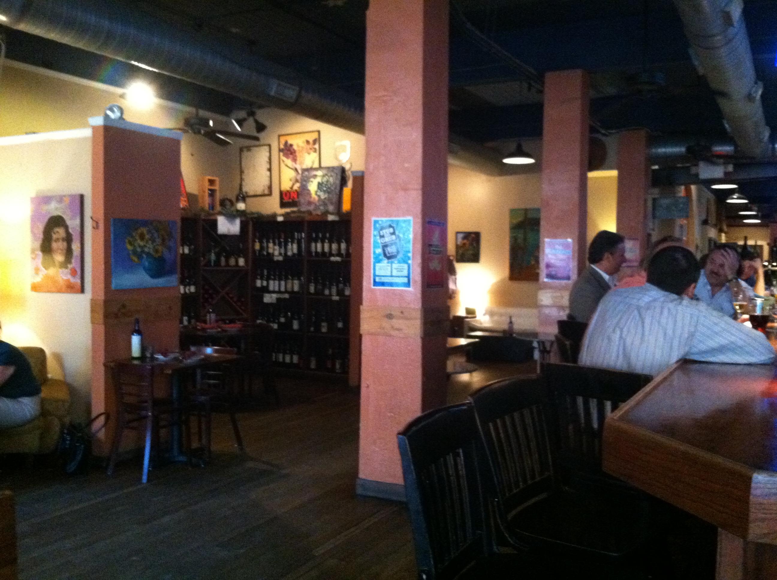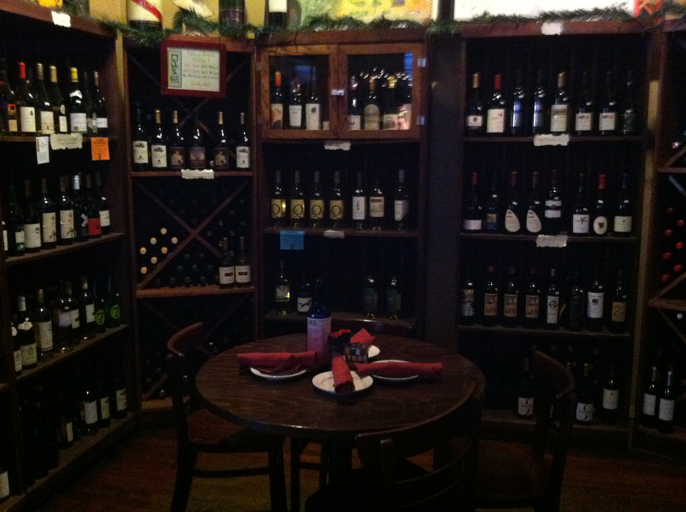 I love this sign at the side of their space. Hanging from a wine bottle!