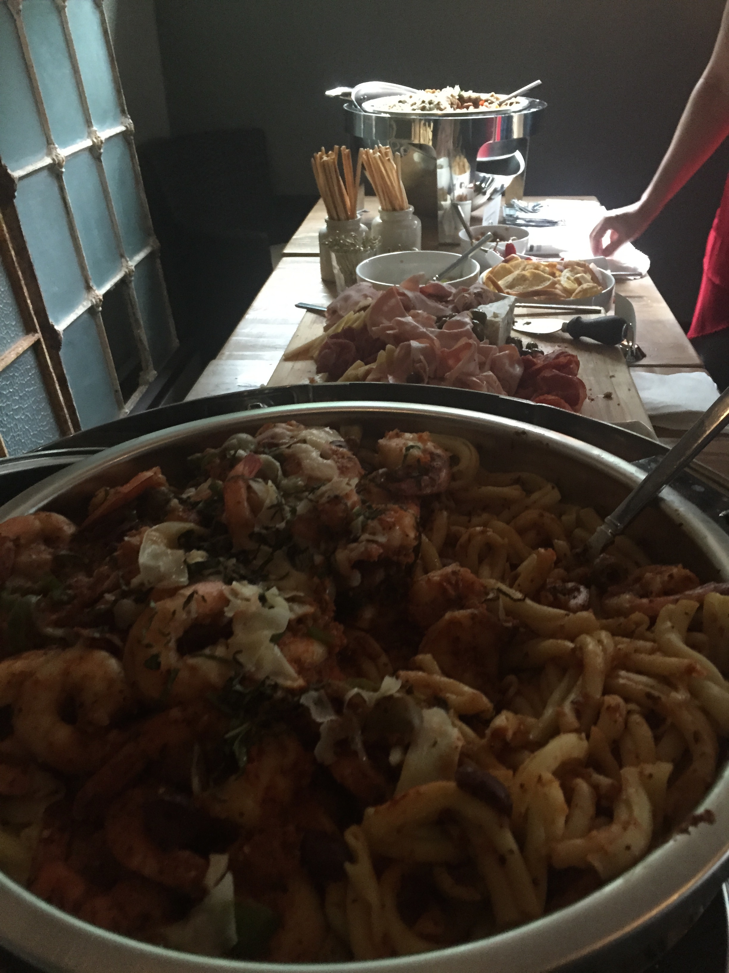 This “gathering” wasn’t like your typical wine dinner. There were tasting stations throughout the loggia with some meat, cheese, olives, veggies, pasta, breadsticks at will. For more info on what was served, keep reading :D.