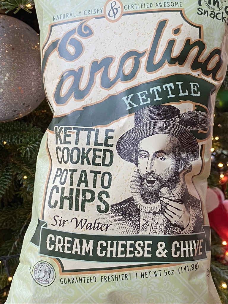 Specifically, the Sir Walter Cream Cheese & Chive. A riff on the sour cream and onion, they’re slightly less tangy than the latter but definitely pack a flavorful punch. We actually love all the Carolina Kettle chips, founded by Josh Monahan. You can find these chips at Mast General Store, Wine Merchants Bodega and quite a few local markets. Check the website carolinakettle.com for locations.