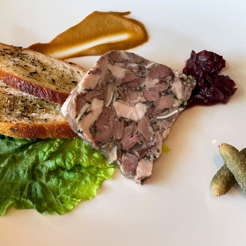 Tete de Porc with ruby port shallot marmalata & strong mustard