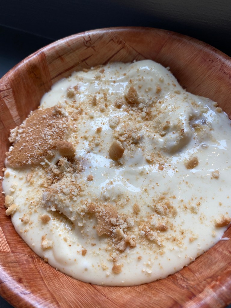 Again, this is not a best or better review…simply a tell-all about chicken sandwiches, but if you love you some banana pudding, Skrimp Shack has it too and it’s a big one …big enough to share and it has the layers like you may know and love. It has more of a vanilla pudding base with bananas layered in. Super old school and yummy.